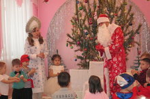 Самый любимый праздник, как взрослых, так и детей, конечно же, Новый год. Подготовка началась задолго до наступления праздников. Воспитатели с детьми разучивали стихотворения, проводили беседы на тему Нового года, новогодних традиций, музыкальные руководители разучивали с воспитанниками песни и пляски. Огромную работу провели по оформлению групп и музыкального зала, за что мы благодарны коллективу. На утренник дети пришли нарядные, весёлые в предвкушении праздника. Воспитатели, дети, участвовавшие, в новогоднем представлении проявили себя хорошими артистами, показав всё своё творческое мастерство, артистизм и организаторские способности. Они перевоплощались в разных сказочных героев: Бабу Ягу, Снегурочку, Деда Мороза и др. персонажей. С самого начала представления сказочные герои увлекали детей в волшебный мир сказки. Дети смогли окунуться в праздничную атмосферу приключений, участвовать в интересных конкурсах. С появлением Деда Мороза начинался настоящий праздник с песнями и танцами. Дети читали стихи Деду Морозу и Снегурочке, фотографировались с персонажами, получали новогодние подарки.