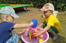 Игры с водой - любимое занятие воспитанников всех возрастов. Летом в детском саду, организуя игры с водой, наши педагоги фантазируют, творят, используют подручные материалы и нестандартные предметы и оборудование.