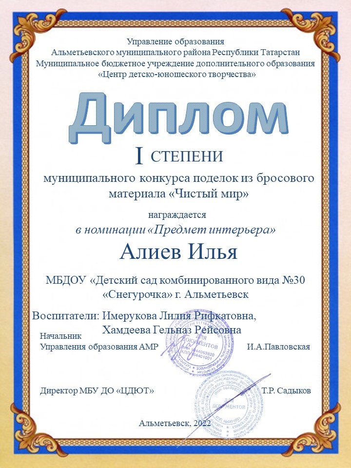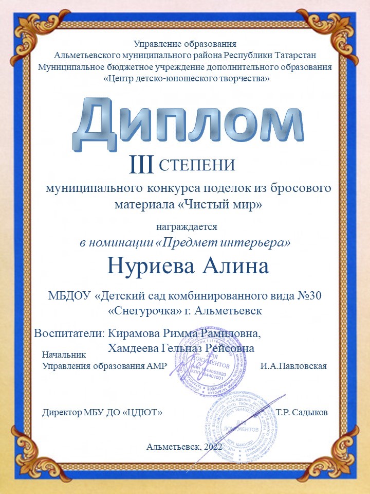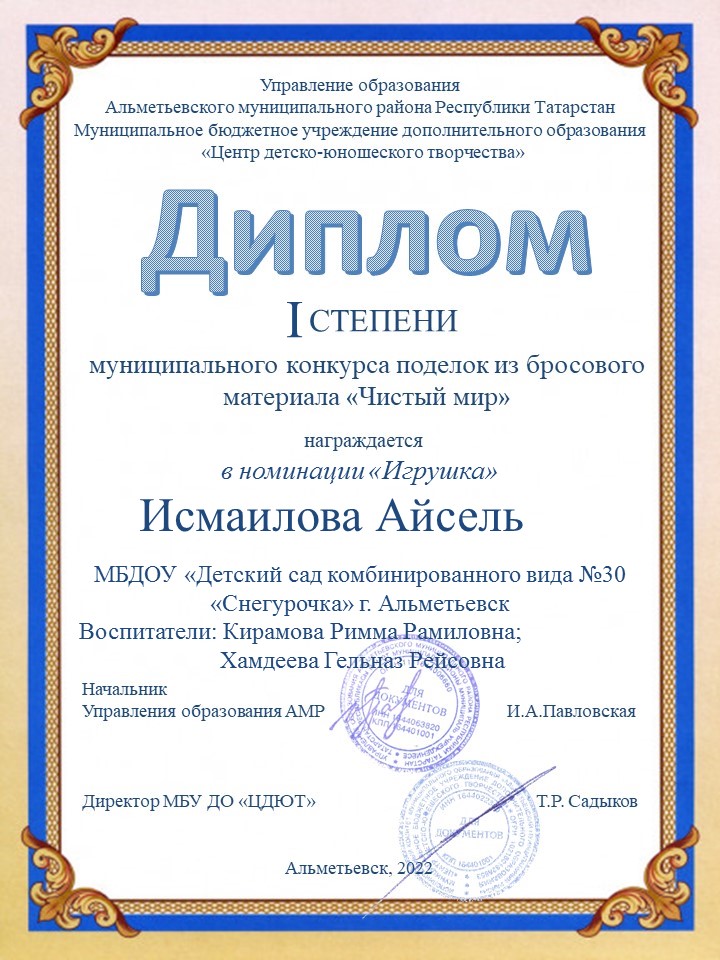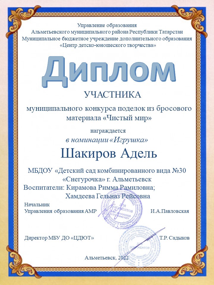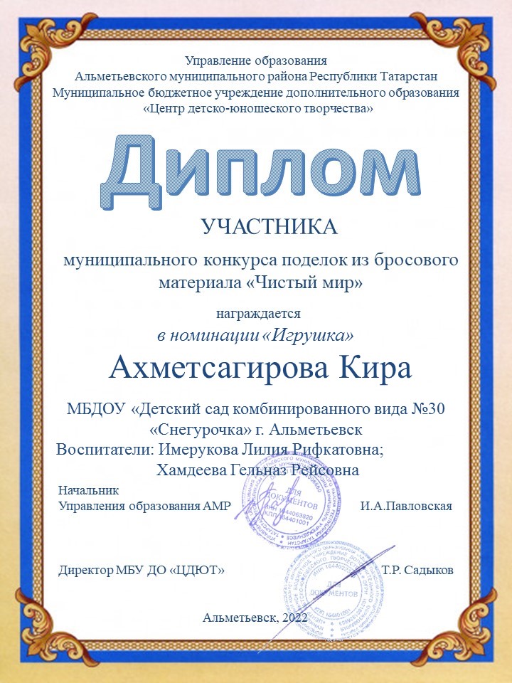 МБДОУ «Детский сад комбинированного вида №30 «Снегурочка» Альметьевского муниципального района Республики Татарстан /"Татарстан Республикасы Әлмәт муниципаль бюджет мәктәпкәчә белем бирү учреждениесе 30 нче катнаш төрдәге "Кар кызы" балалар бакчасы"