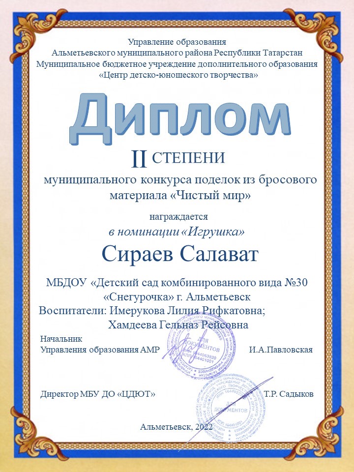 Сахбиев Инсаф "Татар малае - 2022" муниципаль бәйгәсе 2 дәрәҗә