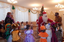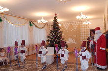 В детском саду начались новогодние утренники. Сегодня радовались встрече с дедом Морозом и Снегурочкой дети первой младшей и старшей группы. Было много песен, хороводов, стихотворений, игр.