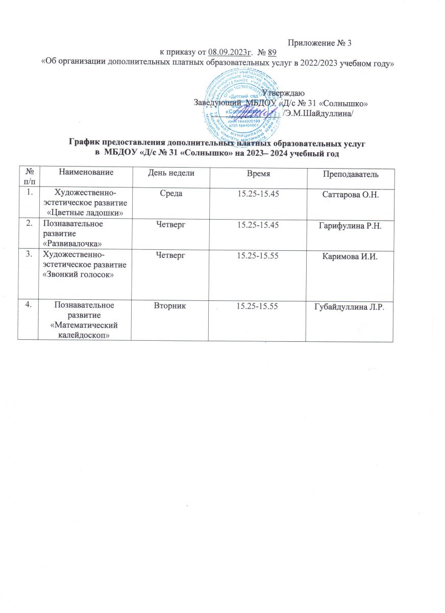 Расписание платных образовательных услуг на 2023-2024 уч.год