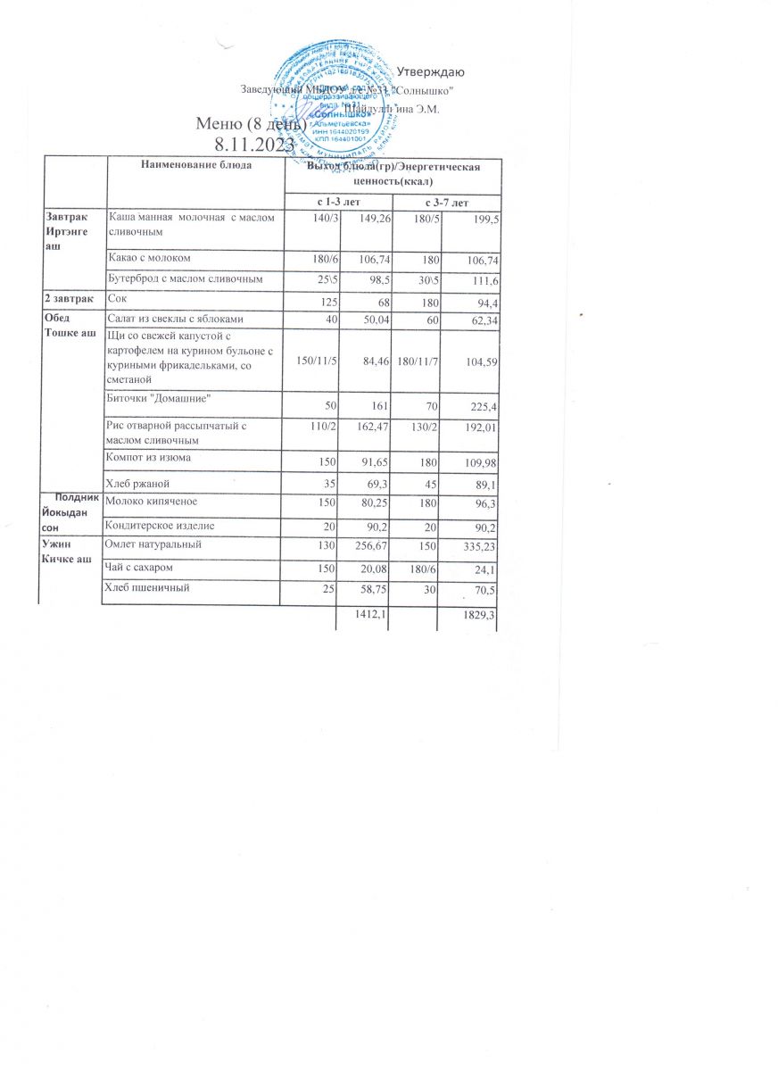 Примерное 10дн меню раскладка с 12ч пребыванием 1-3 года