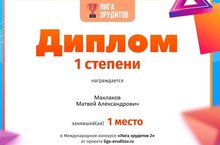 Наши воспитанники участвуют в международных конкурсах и занимают призовые места. Мы поздравляем Маклакова Матвея воспитанника старшей группы с 1 местом и Султанова Самата воспитанника средней группы со 2 местом в международном конкурсе "Лига эрудитов 2" и благодарим воспитателей Зотову Эльвиру Рамилевну и Галлямову Наталью Александровну за подготовку победителей.