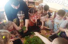 Проект на тему "Герань для цветника" в среденей группе (воспитатель Галлямова Н. А.) приблизился к следующей стадии - пересадки укоренившихся черенков в землю. Журнал для зарисовки наблюдений за укоренением заполнен. Теперь дожидаемся погожих дней в мае, чтобы высадить ростки герани на цветник.