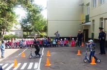 06.09.2017 г. в нашем МБДОУ №32 "Одуванчик" было организовано мероприятие по профилактике безопасного поведения детей на дороге, которое проходило в форме акции "ВНИМНИЕ - ДЕТИ!". Участниками акции стали воспитанники всех возрастных групп и их родители, воспитатели и специалисты. Гостями мероприятия стали Начальник отдела профилактики территориального управления ГБУ "БДД" в г. Альметьевске Л. М. Рафигуллина, инспектор ГИБДД Р. Г. Тухватова, которые отметили активную работу педагогического коллектива по профилактике безопасного поведения детей на улицах нашего города и вручили воспитанникам детского сада игры, книги, раскраски по ПДД, а родителям были вручены пямятки по ПДД (пешеходам и водителям).