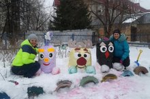 На групповых участках нашего детского сада появились герои м/ф "Смешарики", которых с любовью и старанием создали умелые руки воспитателей и родителей воспитанников. Фигурки мультяшных героев выполнены из разноцветных мусорных мешков, наполненных снегом. Еще долго Смешарики будут радовать глаз и поднимать настроение детям на прогулках.