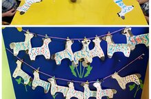 Декоративное рисование по мотивам "Дымковской росписи", дети старшей группы "Лютики" вырезали и украшали силуэт элементами дымковской росписи.