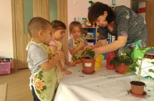 10 апреля, во второй младшей группе « Ладушки» была проведена ОД на тему « Мы сажаем, поливаем и расточки ожидаем». Воспитатель Ахметханова Ильгиза Закияновна предложила детям помочь ей посадить комнатные растения. Дети совместно с воспитателем заранее посадила черенки герани и розы в воду, наблюдали за ними, когда у них появятся корни. И вот корни появились. Ребята помогали насыпать землю в горшки, поливать. Также посеяли овёс в контейнер из-под торта. С большим удовольствием они будут наблюдать за ростом и цветением их растений.