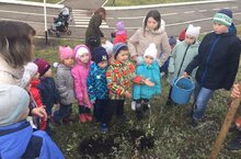 В рамках республиканской природоохранной акции «Неделя леса» в МБДОУ «ЦРР-д/с №35 «Сказочная страна» состоялась посадка деревьев. Воспитанники старшей группы «Солнышко» (воспитатель Мухаметзянова Г.Р.) совместно с учениками 5-го "ж" класса СОШ №25 (учитель Валиуллина Э.Ф.) посадили на территории детского сада три кедра и два клена. Дошкольникам очень нравится клен за необычную форму листьев, похожих на ладошки и разнообразную окраску в период листопада. Теперь небольшие деревца станут объектами наблюдений и ухода, что сформирует у детей интерес и бережное отношение к природе.