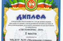 Детский сад №35 «Маленькая страна» стал победителем городского смотра-конкурса среди ДОУ по профилактике и предупреждению детского дорожно-транспортного травматизма «Светофорик-2015»