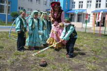 Җәйге иң матур бәйрәмнәренең берсе – Сабантуе гөрләп авылларда һәм шәһәребез Әлмәттә узганнан соң милли бәйрәмебез “Нәни ил ” 35нче санлы балалар бакчасында да үтте.