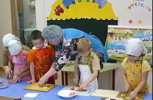 «Винегрет – шоу» - так назвали процесс приготовления салата ребята и их родители подготовительной к школе группы «Любознайки». Дети с радостью и интересом отнеслись к подготовке овощей к работе, а появление мам Фазлытдинова Реналя, Фархутдинова Артура, Левановой Аделины, папы Марии Фадеевой, бабушки Бориса Артемьева вызвало восторг у ребят.