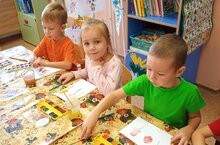 Ребята старшей группы "Солнышко"закрепили правила дорожного движения: как правильно переходить дорогу по пешеходному переходу, на какой сигнал светофора можно идти. Обсудили на какие элементы делится дорога. Решили всё отобразить в своих рисунках.