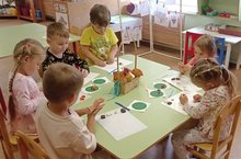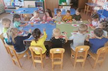 Веселее только скачет...так началось занятие в группе "Зайчики". Ребята отгадывали загадки, играли в подвижные игры, называли любимые цвета, а самым приятным моментом стала аппликация. С работой справились...расположили мячи на листе бумаги. Детям занятие понравилось.