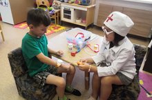 В старшей группе "Весёлые ребята" были проведены беседы: "Профессии моих родителей", "Все профессии важны", "Кем ты хочешь стать?", в ходе которой все вместе выяснили, что такое профессия, ребята рассказали, кем они хотят стать, отгадали загадки о людях разных профессий, и обыграли сюжетно- ролевые игры.