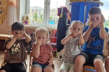 Одновременно любопытно первой младшей группе "Зайчики " и подг.гр "Котята"