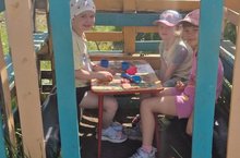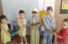 "Разноцветное лето" Ребята с большим удовольствие участвуют в процессе. Обменялись рассадой с группой " Котята". -