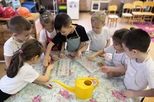 Дети средней группы "Цыплята"пополнили свой" Огород".Посадили ещё лук, посеяли рукколу, цветы бархатцы, а также в цветочные горшки посадили комнатные растения. Сегодня дети заметили, что за выходные уже появились первые всходы рукколы и бархатцев. Дети с любопытством наблюдают за растениями, радуются результатам, сегодня ещё принесли семена укропа, петрушки, гороха, базилика. Мы с детьми продолжим преумножать наш "огород".