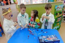 День российской науки ребята начали с придумывания и решения кроссвордов, которые они сами начертили и заполнили, вписывая слова, которые они запомнили, изучая историю науки. Рассматривая портреты ученых М.В.Ломоносова, Д.И.Менделеева, А.С.Попова, А.Ф.Можайского, К.Э. Циалковского, А.Н.Лодыгина, И.В.Мичурина, Ф А Блинова и др. они узнали об их изобретениях. Игры с микроскопами и конструктором "Модель человека" очень понравились детям, они организовали свои лаборатории и смогли в практической деятельности познакомиться с интересным миром науки. Воспитатель Фролова А.Н.
