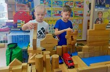 Дети из старшей группы "Фантазеры" используют сделанные дома с родителями макеты для изучения правил безопасности в своих играх. Здесь они строят города с применением наборов строительных деталей "Бабашки", в ходе которых они проявляют фантазию и творчество, закрепляют навыки безопасного поведения и получают заряд бодрого настроения от общения друг с другом. Воспитатель Фролова А.Н.