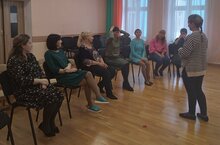 С педагогами была проведена диагностика, беседа и игры на поднятие энергии. Педагоги были увлечены играми и по окончанию тренинга довольными, радостными . -