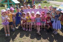 Акция «Разноцветное лето» объединила детей и родителей группы «Любознайки». 24.06 состоялся День подарка. Семья Штейнберг подарила рассаду , выращенную для сада. Веранда, украшенная корзинами с цветами - прекрасный летний подарок!