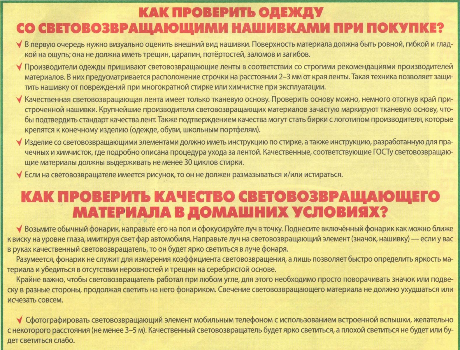 Памятка «Как проверить качество световозвращающего элемента?»