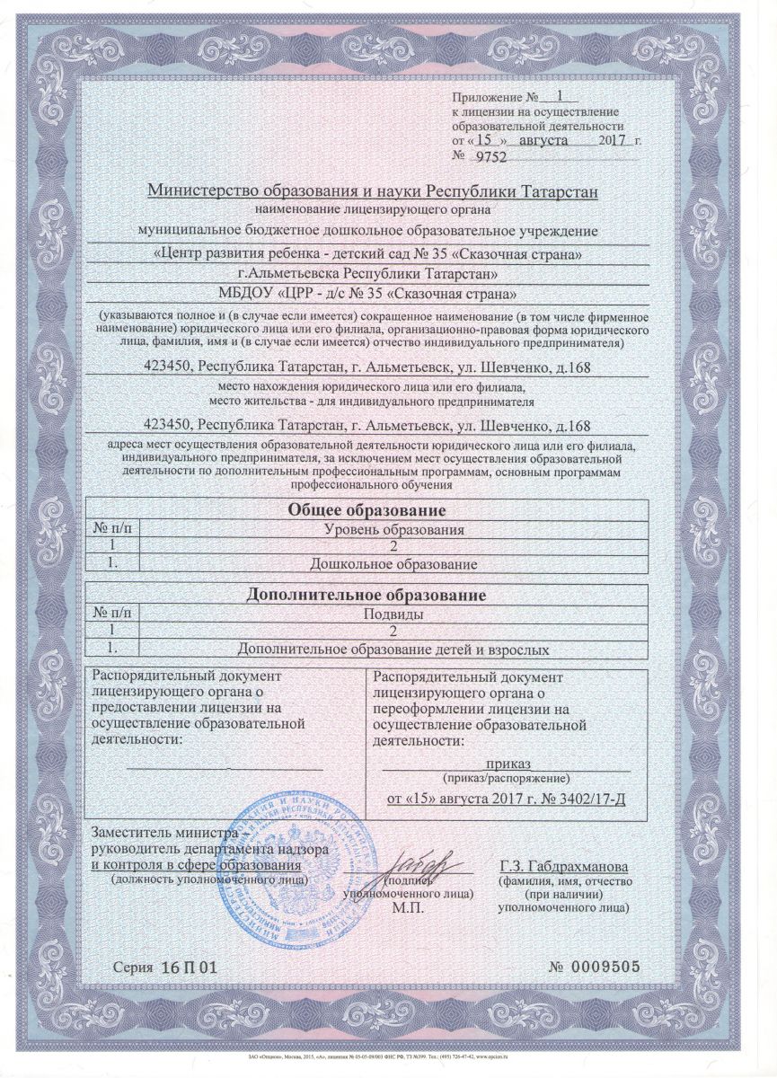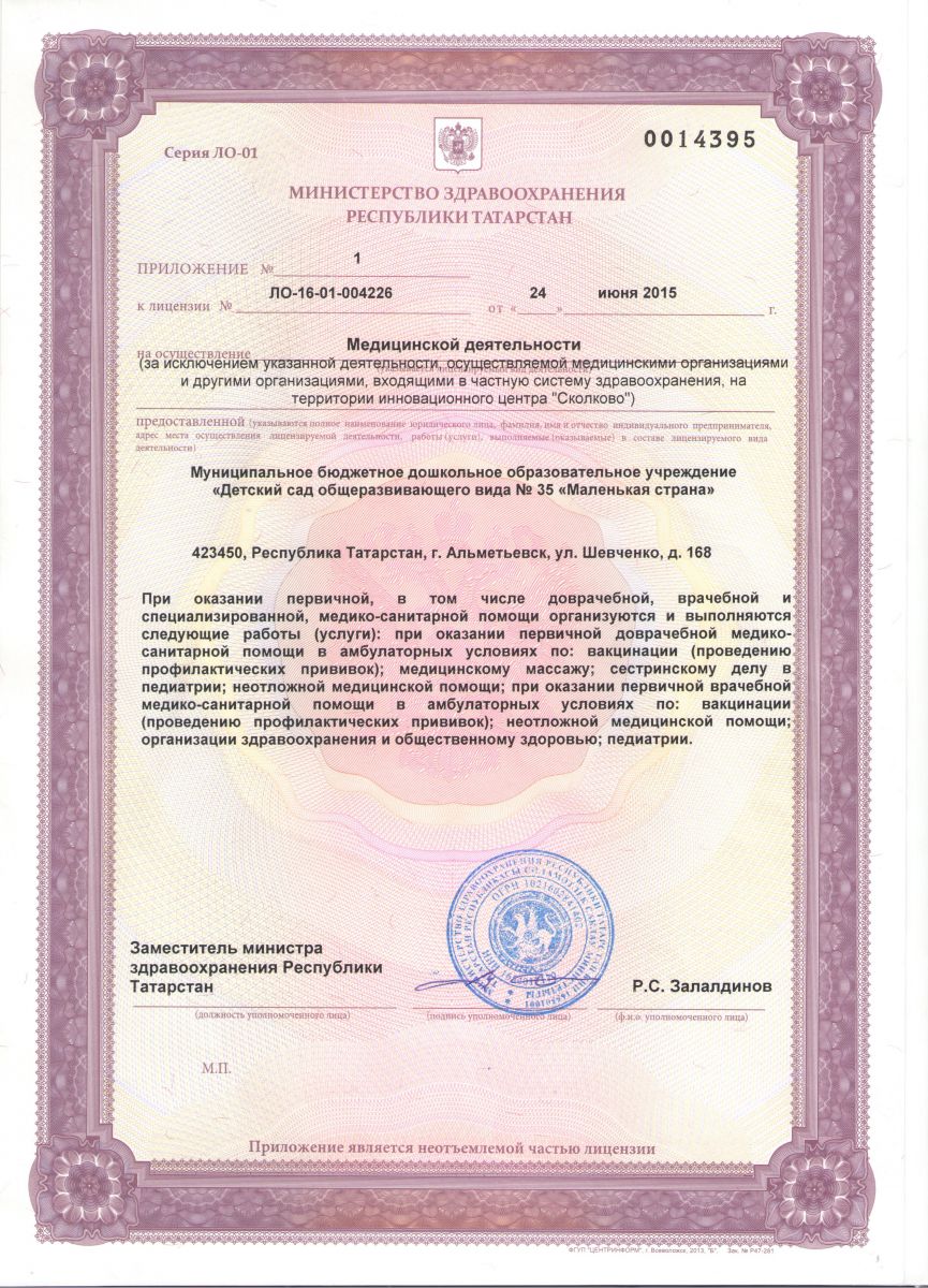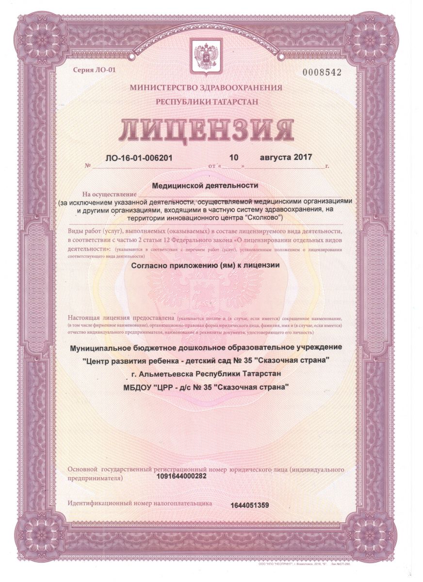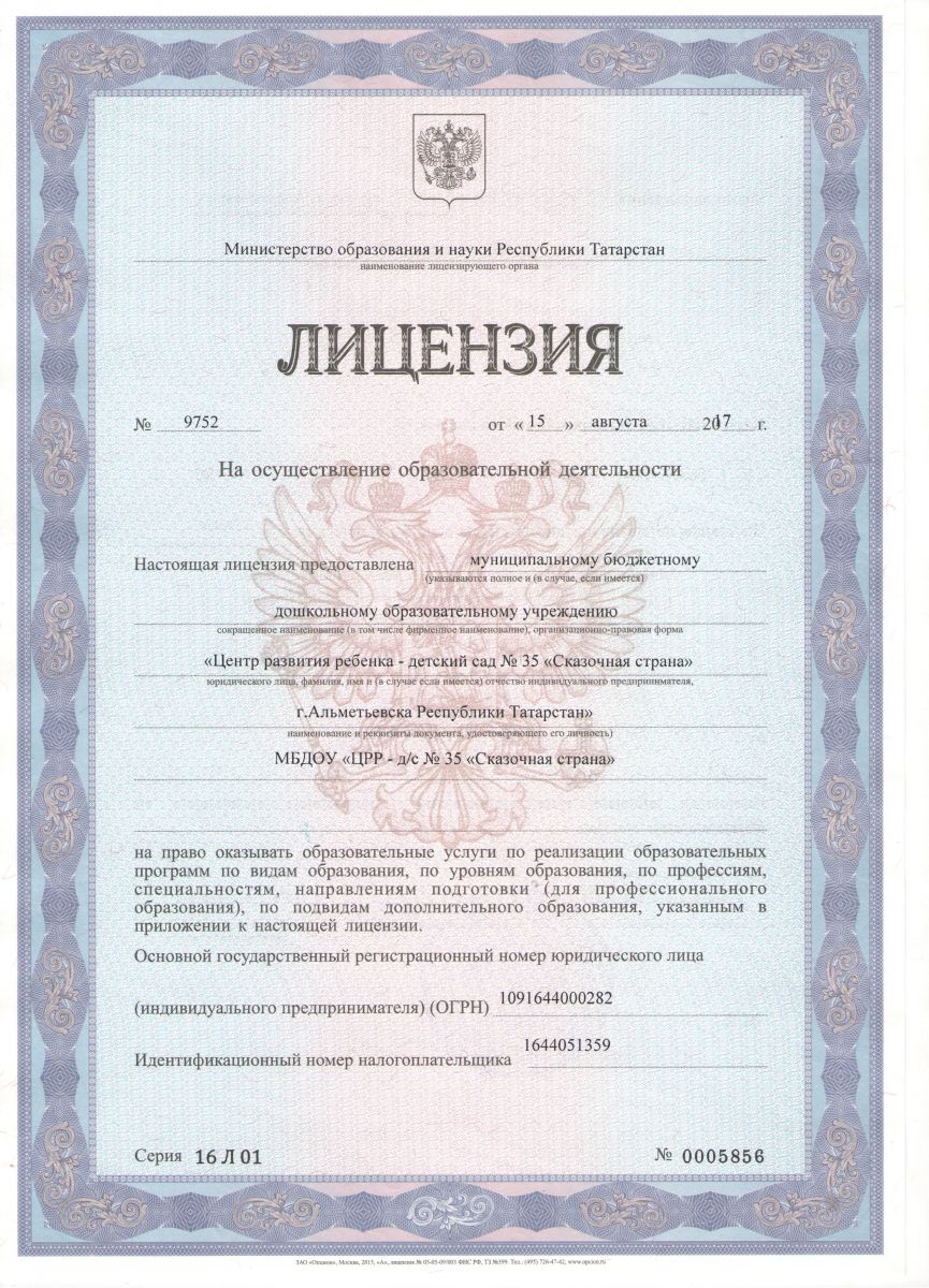 Муниципальное бюджетное дошкольное образовательное учреждение «Центр развития ребенка - детский сад №35 «Сказочная страна» г.Альметьевска Республики Татарстан» / Татарстан Республикасы Әлмәт шәһәре "Баланың сәләтен үстерү үзәге 35-нче "Әкият иле" балалар бакчасы муниципаль бюджет мәктәпкәчә белем бирү учреждениесе"