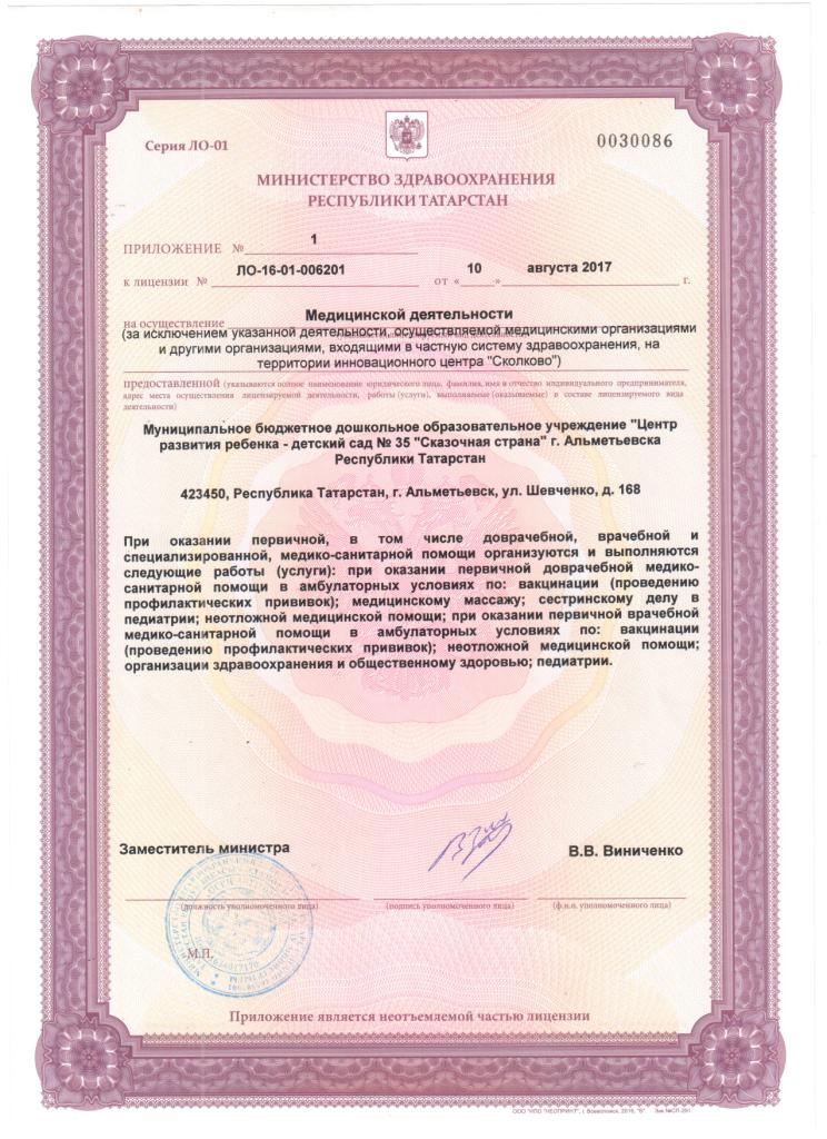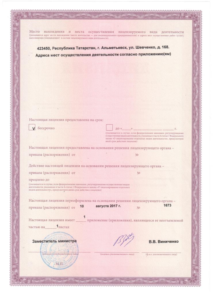 Лицензия на осуществление медицинской деятельности (2сторона)