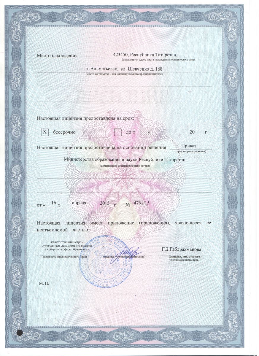Лицензия на осуществление образовательной деятельности