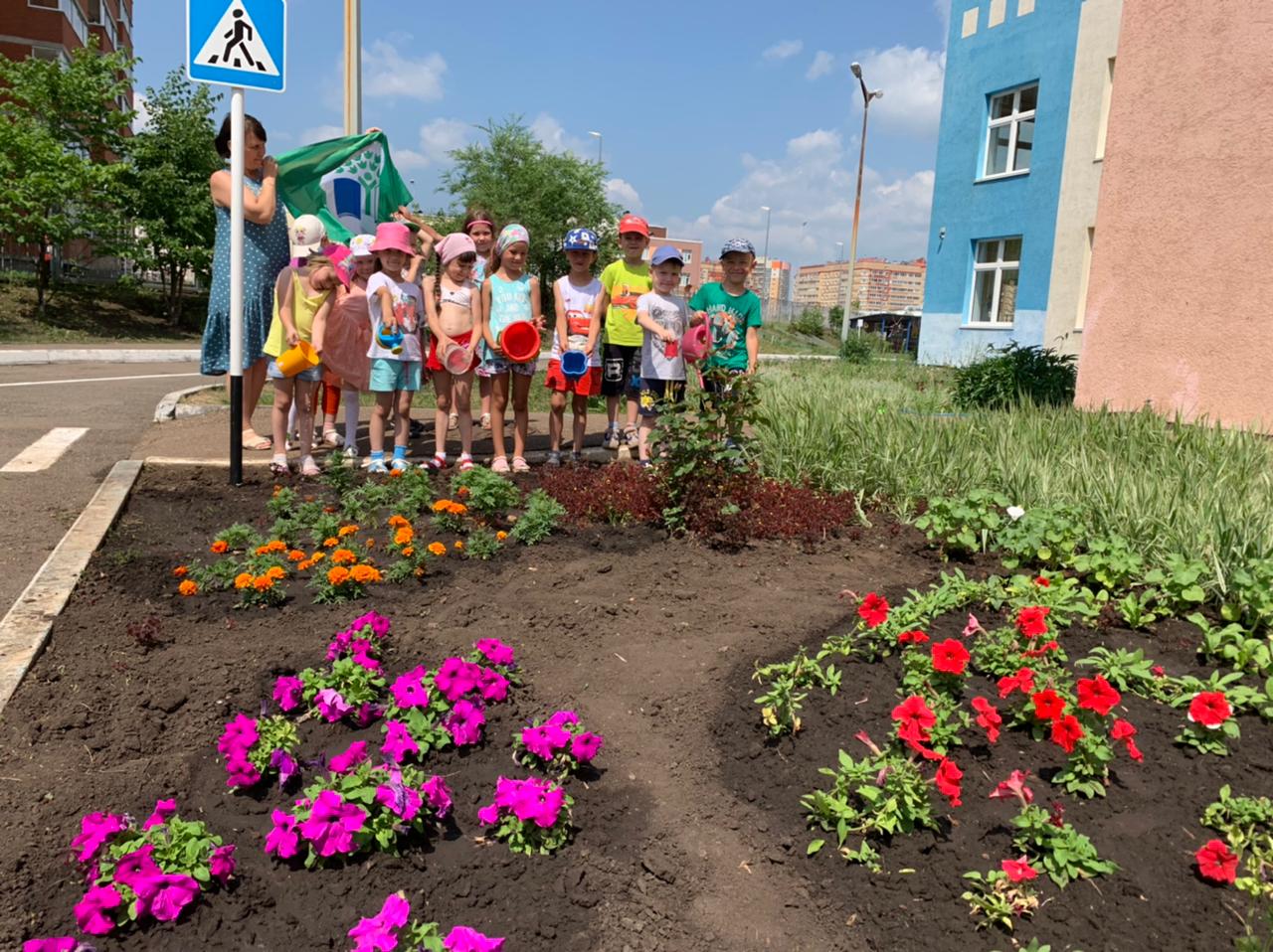24.06 юные участники Всероссийской акции «Разноцветное лето» организовали экскурсию по цветникам сада, которая завершилась поливом клумб , выращенных детьми и воспитателями (Ивановой Е.А., Кузнецовой О. В.) ФОТО