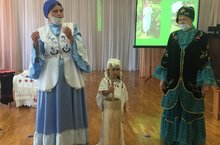Сегодня у нас в гостях побывал Мемориальный музей имени Р.Фахреддина из села Кичучатово. Сотрудники музея вместе с детьми совершили виртуальную экскурсию по музею. Дети узнали как прошло детство Ризаддина, попробовали смекшать масло в деревянной маслобойке. Ребятам предоставилась возможность примерить татарские народные костюмы, увидеть разницу между костюмами для полевых работ, повседневного платья и праздничного наряда. Нашим воспитанникам очень понравилось, было интересно и познавательно!.