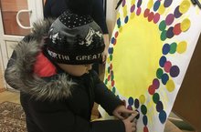Цель акции: повысить настроения детей и взрослых в детском саду на начало дня. Родителям и педагогам, а также детям предлагалось выразить свое настроение при помощи цветных кружочков. В холле на первом этаже было вывезено солнышко. Родители, педагоги и дети наклеивали на солнышко разноцветные кружочки.