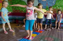 Дети средней группы «Радуга», воспитатель Галимова Н.Р. ежедневно проводят коррегирующие упражнения для стоп: ходят босиком по песку, траве и по коррегирующим дорожмкам.