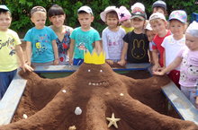 По условиям конкурса постройки можно было дополнять не только бросовым, природным материалом, но и «Мозаикой» и «Детским строителем» (кубиками, кирпичиками, брусками и т. д). В выборе темы не было ограничений. У малышей в группах «Радость» и «Кроха» в песочнице появились «Осминожеки», в группе «Малыш» - подводный мир. В средней группе «Радуга» - торт на день рождения девочки. Дети старшей группы «Пчелка» слепили «Жабу», а в группе «Светофорик» - «Сказочный домик высоко в горах». В татарской группе «Гөлбакча» построили кораблик «Алые паруса» Татарстана. Конкурс удался на славу! Все группы получили дипломы.
