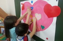 В течение дня всем ребятам детского сада предлагалось сделать «сердце группы». Педагоги вырезали большое сердце, потом ребята украсили маленькими сердечками, вырезанными из цветной бумаги. Большие сердца групп, сделанные руками детей, получились «горячими».