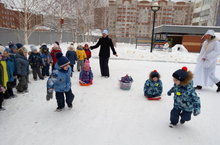 Сегодня в преддверии Нового года в нашем саду прошёл физкультурный досуг на воздухе для детей средних групп «Зимние созтязания». Цель мероприятия: развитие ловкости, взаимовыручки, ловкости, сплочённости и желание заниматься спортом. Зимушка – Зима организовала с детьми разные соревнования: «Бег на одной лыже», «Быстрые упряжки», «Точно в цель», «Угадай». А в конце праздника Гостья вручила детям сладкие призы. Праздник получился весёлым и задорным.
