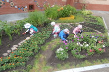 Разнообразный труд в природе доставляет детям много радости и содействует их всестороннему развитию. В процессе труда воспитываются любовь к природе, бережное отношение к ней. У детей развиваются интерес к трудовой деятельности, сознательное, ответственное отношение к ней. В коллективе дети приучаются трудиться сообща, помогать друг другу.Труд в природе имеет большое образовательное значение. Он расширяет кругозор детей, создает благоприятные условия для решения задач всестороннего воспитания.В группе "Детство" также, как и во всех других, ребята вместе с воспитателями Тимаковой Т.А. и Мухаметзяновой Э.Ф. ухаживают за цветами на клумбах,наблюдают за их ростом и развитием и осознают, что каждый из нас в ответе за природу.