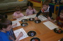 Необычные, интересные приключения ожидают каждый раз детишек в кабинете педагога – психолога. Борисова Оксана Анатольевна, используя программу подготовки детей к школе средствами «каплетерапии» «Цветные капельки», с помощью сказочного персонажа Кляксы изучают с детьми формы, смешивают цвет каплей, рассматривают их, описывают, сравнивают.Техника изготовления капли пипеткой использоваться как средство развития концентрации внимания, координации движений, развития мелкой моторики, подготовки руки дошкольника к письму, а также в качестве арт-терапии. Это способствует большему раскрепощению ребенка, созданию ситуации успеха, возможности без ущерба для самооценки переделать, исправить сделанное.