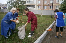 Сегодня в нашем "Волшебном дворце" прошёл экологический субботник. Наши сотрудники приняли в нём активное участие.