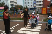 В татарской группе «Гөлбакча» ежедневно ведётся работа по обучению детей правилам дорожного движения. Сегодня дети рассматривали плакат «Наш друг - Светофор». Воспитатель – Зарипова Ляйсан Расимовна подробно рассказала о том, как себя вести на пешеходном переходе. Полученные знания закреплялись и на прогулке. Также в группе имеется уголок по обучению правилам безопасного поведения на дорогах – любимое место ребят, ведь здесь очень много интересного: макеты улиц и перекрёстков, светофоры, автомобили и игрушки - пешеходы. Каждый день дети узнают новое и полезное, играя в этом уголке.