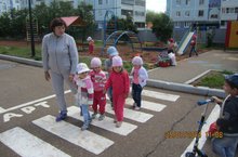 Кашина Резеда Ансаровна и Садыкова Эльмира Азатовна стараются сделать так, чтобы каждый день дети узнавали что-то новое и интересное. Вместе со своими воспитанниками они изучают и закрепляют правила дорожного движения. Воспитатели обращают внимание на движение пешеходов, транспортных средств, называются цвета сигналов светофора, уточняются названия частей автомобилей, знакомят с простейшими терминами и названиями дорожных знаков, на собственном примере показывают образец правильного и безопасного поведения на дорогах.
