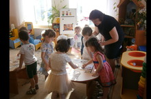 В рамках базовой площадки по обучению детей государственным языкам для воспитателей по обучению татарскому языку прошел обучающий семинар с просмотром занятий с детьми старших и подготовительных групп по проектам: «Уйный-уйный үсәбез» и «Без инде хәзер зурлар, мәктәпкә илтә юллар». Дети играли в разные игры, составляли диалоги, рассказывали об игрушках на татарском языке. Участники семинара посмотрели как русскоязычные воспитатели закрепляют пройденный материал с детьми в группе , знакомились с языковой средой , с уголками по УМК и НРК в группах.
