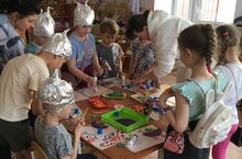 . А если точнее, то каждый ребёнок мог выбрать себе занятие по желанию и самостоятельно продумать свой маршрут. В каждой группе педагогами были организованы мастерские-клубы, тематикой которых был «Космос». Мастерили шлемы, запускали ракеты, делали космические часы и инопланетян. В спортзале проходили программу физподготовки для космонавтов, в медицинском кабинете разбирались в правильном питании, в музыкальном зале «отжигали» вместе с Космиками, а в кабинете татарского языка был открыт кинозал с космическими мультиками. Побывали даже в кабинете у заведующей!