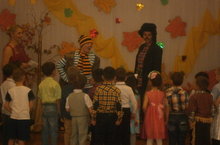 Замечательный осенний праздник прошёл в группе углубленного изучения английского языка "Пчёлка". Ребята отправились в деревню Простоквашино на помощь своим любимым персонажам, где они вместе с котом Матроскиным и пёсиком Шариком " поработали" в огороде, прочитали стихи, спели песни об осени,участвовали в викторине "Fruit and vegetables", прогнали дождь английской песенкой, сварили "овощной" суп. А самое интересное началось тогда, когда дети отправились искать корову Мурку. Они "забрели" так далеко, что встретили ковбоев и вместе с ними отправилиь на ферму старого тдядюшки МакДональда, где и отыскали Мурку, которая угостила всех волшебными яблоками. Дети и родители были в восторге. Праздник удался на славу!