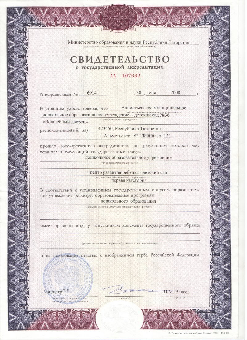 Свидетельство о государственной аккредитации