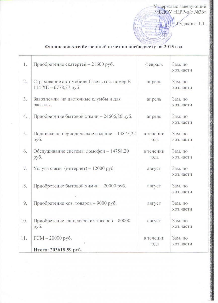 Административно-хозяйственный отчёт МАДОУ "ЦРР - д/с №36" на 31.12.2014 г.
