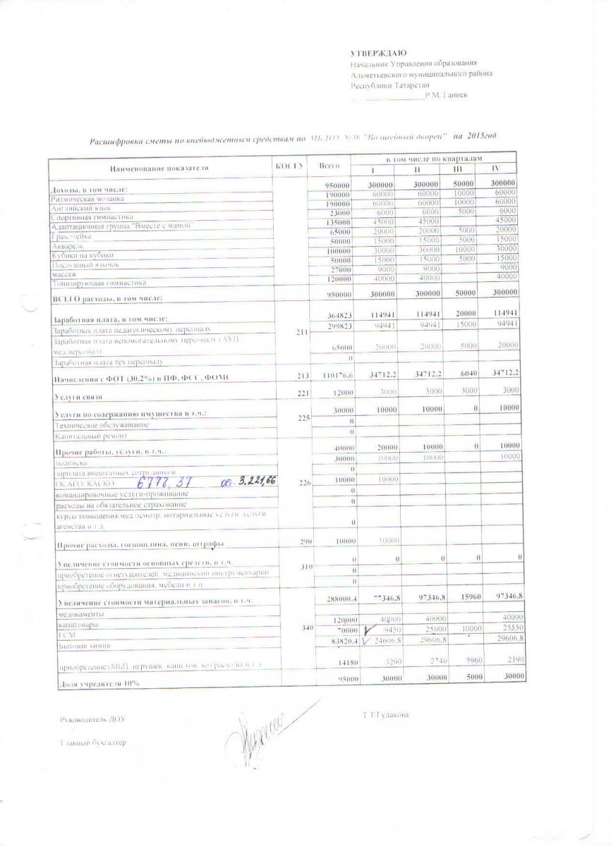 Расшифровка сметы по внебюджетным средствам по МБДОУ "ЦРР - д/с №36 "Волшебный дворец" на 2015 год