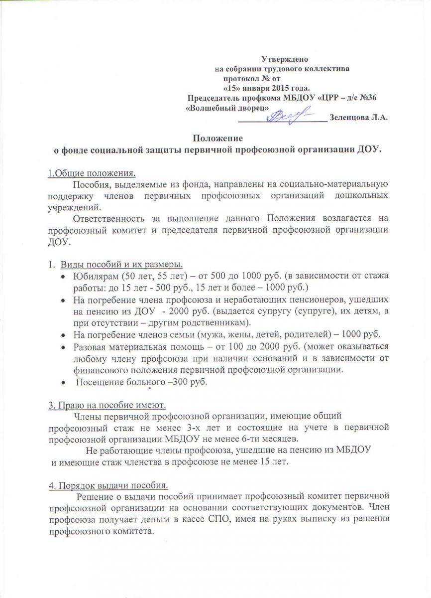 Положение о фонде социальной защиты первичной профсоюзной организации ДО